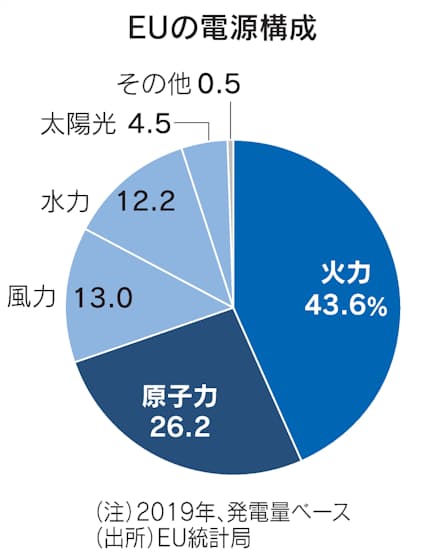 EUのフォンデアライエン委員長は10月に「我々には安定的なエネルギー源である原子力が必要だ」と述べた。EUは経済活動が環境に配慮しているか判断する基準「EUタクソノミー」で原発を「グリーン電源」に位置づけるか、加盟国間で激しい議論が続く。