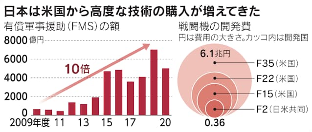 艦艇などに搭載する巡航ミサイルの射程は大幅に伸び、戦闘機はレーダーに映りにくい「ステルス機」が主流になった。国内企業の独自開発は困難で、米国の日本への対外有償軍事援助(FMS)が10年間で10倍に膨らんだ。
